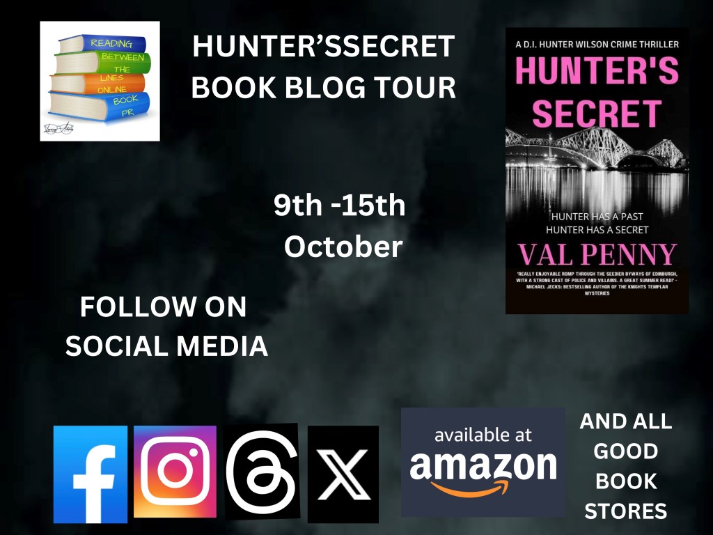 I am thrilled to participate in Reading Between The Lines’ blog tour for Hunter’s Secret, book 5 in the DI Hunter Wilson Crime Thriller Series by Val Penny and published by SpellBound Books.